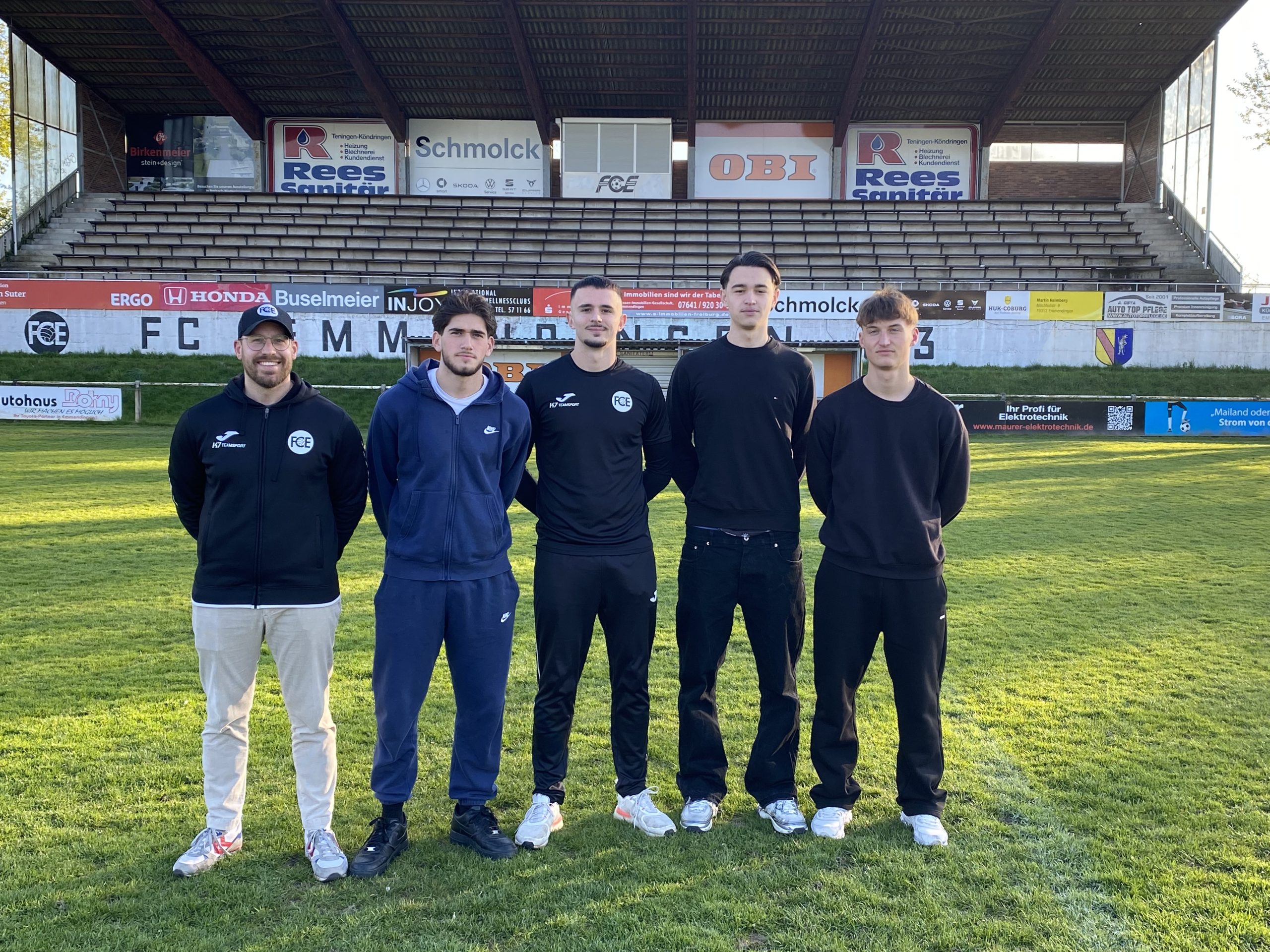 Mit FCE-Sportvorstand Marius Kasten (links) zeigen sich (v.l.n.r.) Amro Al Absi, Alexander Buschmann, Mike Romme, Jaspar Stolz. Es fehlt Alessandro Westhäusser
